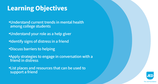 Be on the lookout for communication related to these all-member training opportunities throughout the summer and fall 2022 semester. In the meantime, check out these easy-to-use guides from JED on how to ask for and offer help: